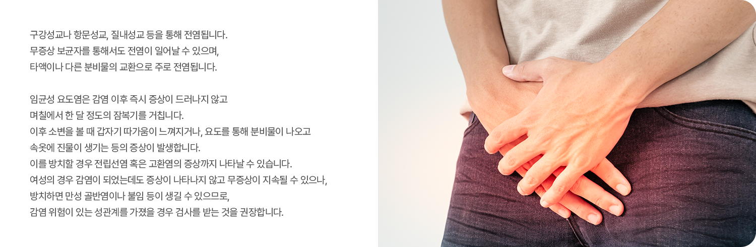 주로 남성의 요도 및 여성의 자궁경부에 염증을 일으키며,