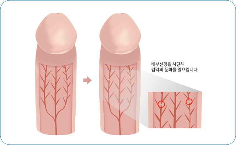 레이저 등의 에너지원을 이용해 지나치게 발달한 배부 신경을 차단하여 민감도를 조절합니다.이때 환자의 증상과 신경발달의 정도에 맞춰 최적의 정도로 신경을 차단하여야 만족감을 극대화할 수 있도록 합니다.